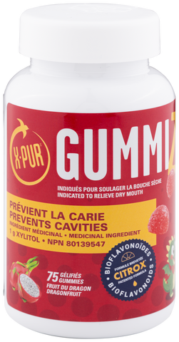 Découvrez nos nouveaux X-PUR GummiZ thérapeutiques, disponibles en deux délicieuses saveurs : fruits tropicaux pour les adultes, afin de stimuler la salivation, et fruit du dragon pour les enfants, afin de prévenir les caries.